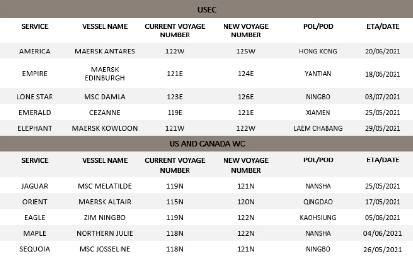 Hãng tàu Maersk đã công bố các dịch vụ trên tuyến châu Á-Bắc Mỹ của họ đã bị chậm trễ khá nhiều trong năm 2021, chủ yếu do tắc nghẽn liên tục ở cả hai bờ biển (bờ Tây và bờ Đông của Mỹ), trầm trọng hơn do tắc nghẽn và thời tiết bất lợi ở châu Á và sự cố ở kênh đào Suez.