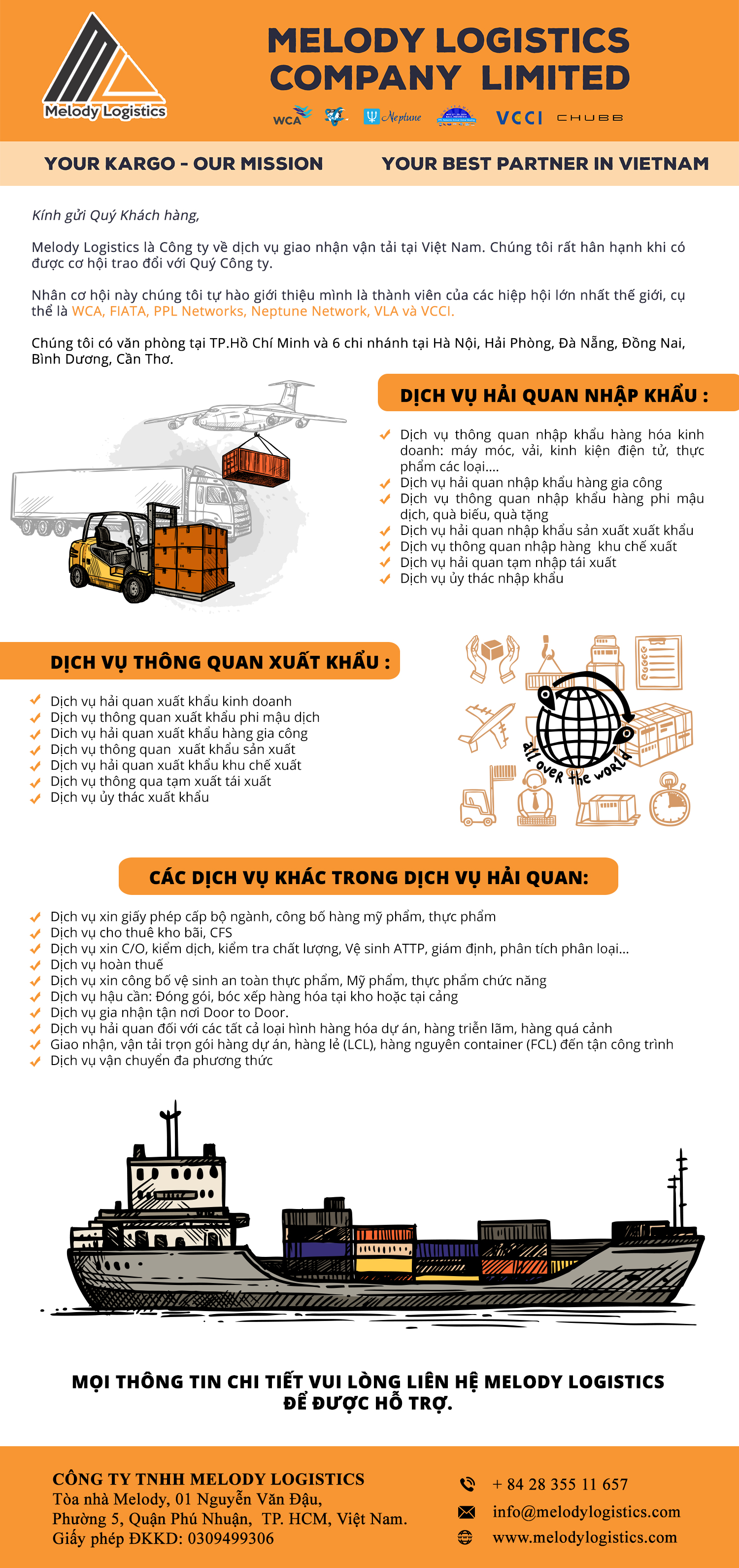 gồm các dịch vụ từ Thông quan, chuẩn bị chứng từ (vận đơn, giấy chứng nhận xuất