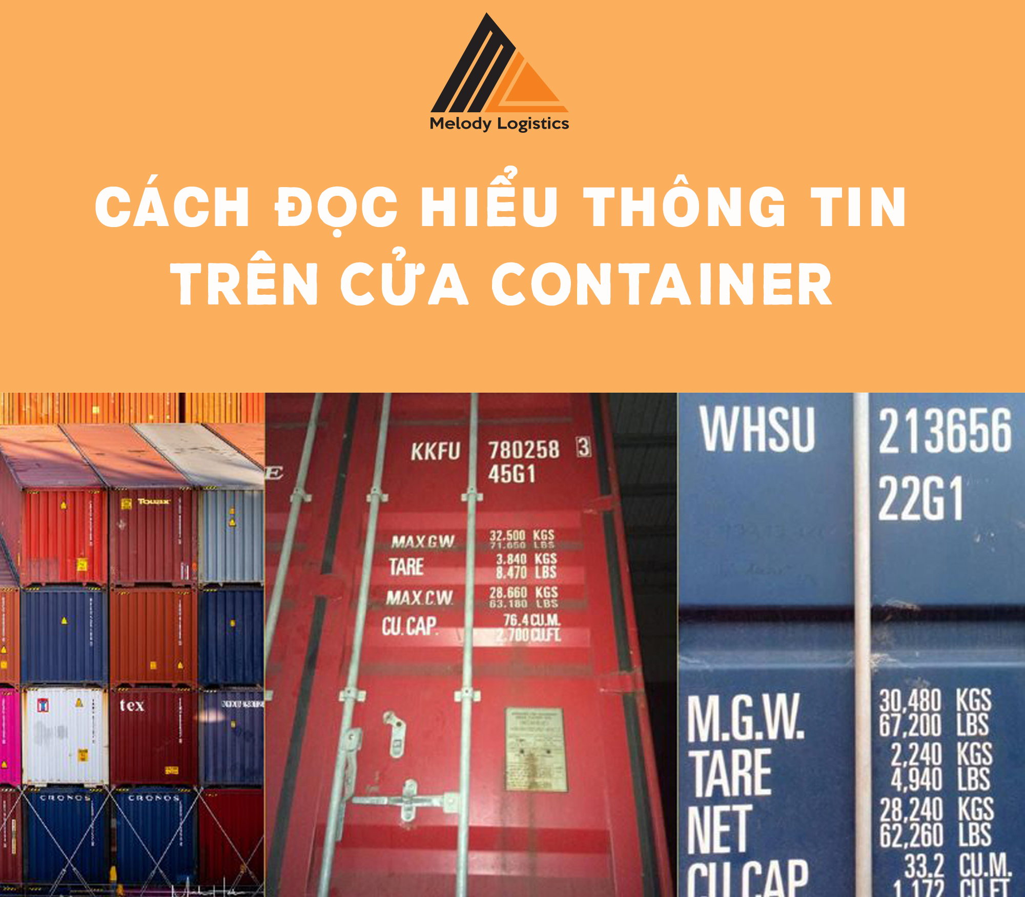 Thường thì trên 2 cánh cửa sau của cont sẽ thể hiện các thông tin cơ bản sau, bạn có thể kết hợp xem hình ảnh kèm theo dễ hiểu hơn.